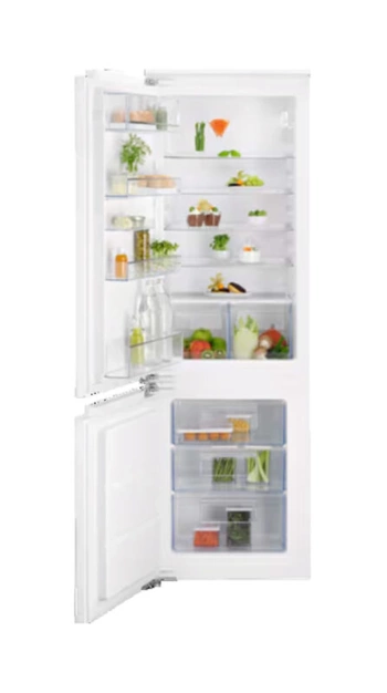 Electrolux LNS5LE18S je ugradbeni kombinovani zamrzivaač dizajniran za besprijekornu integraciju u modernu kuhinju. Zahvaljujući ugradbenom dizajnu, ovaj uređaj se potpuno stapa s kuhinjskim elementima, stvarajući elegantan i ujednačen izgled. Idealan za one koji žele sakriti uređaje i postići minimalistički izgled kuhinje. Low Frost tehnologija smanjuje nakupljanje leda u zamrzivaču, što značajno olakšava održavanje i smanjuje potrebu za čestim odmrzavanjem. Zahvaljujući preciznim elektronskim senzorima, zamrzivač 500 ColdSense brzo se vraća na adekvatnu temperaturu nakon otvaranja i zatvaranja vrata. Time pomaže u sprječavanju nastavka naglih promjena temperature i kvarenja hrane, u svrhu potpune zaštite hrane. Preuzmite kontrolu nad uslovima skladištenja hrane s unutrašnjom elektronskom kontrolom. LED indikatori prikladno prikazuju temperaturu, a postavke otklanjaju bilo kakva nagađanja.